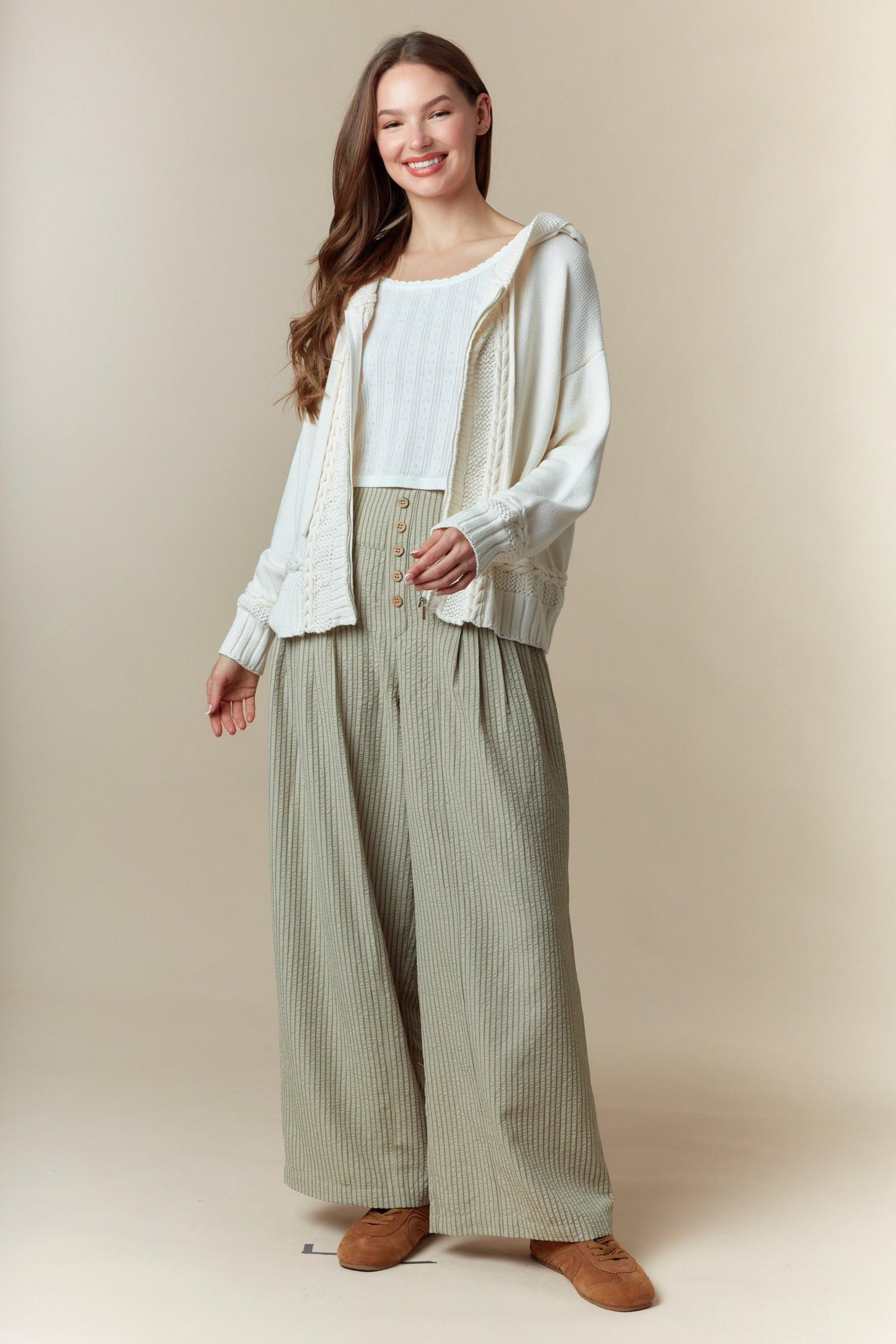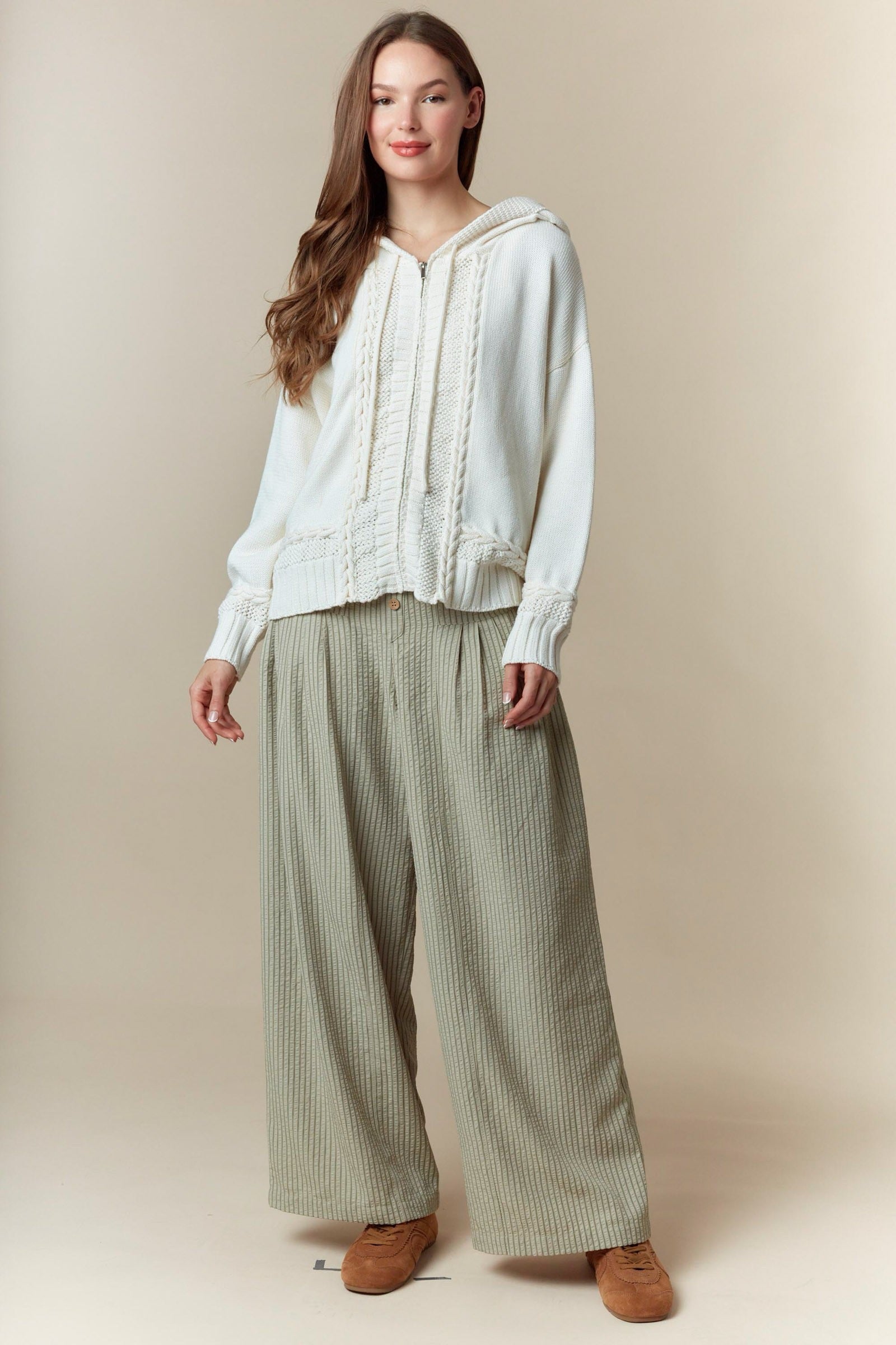 Classic meets cozy in this cream cable knit zip hoodie, your new go-to for effortlessly elevated comfort. Made from a soft, mid-weight knit, it features beautiful cable and ribbed detailing that add texture and charm to its timeless silhouette. The zip-front closure makes it easy to layer, while the relaxed fit and drawstring hood keep things perfectly casual and comfy.