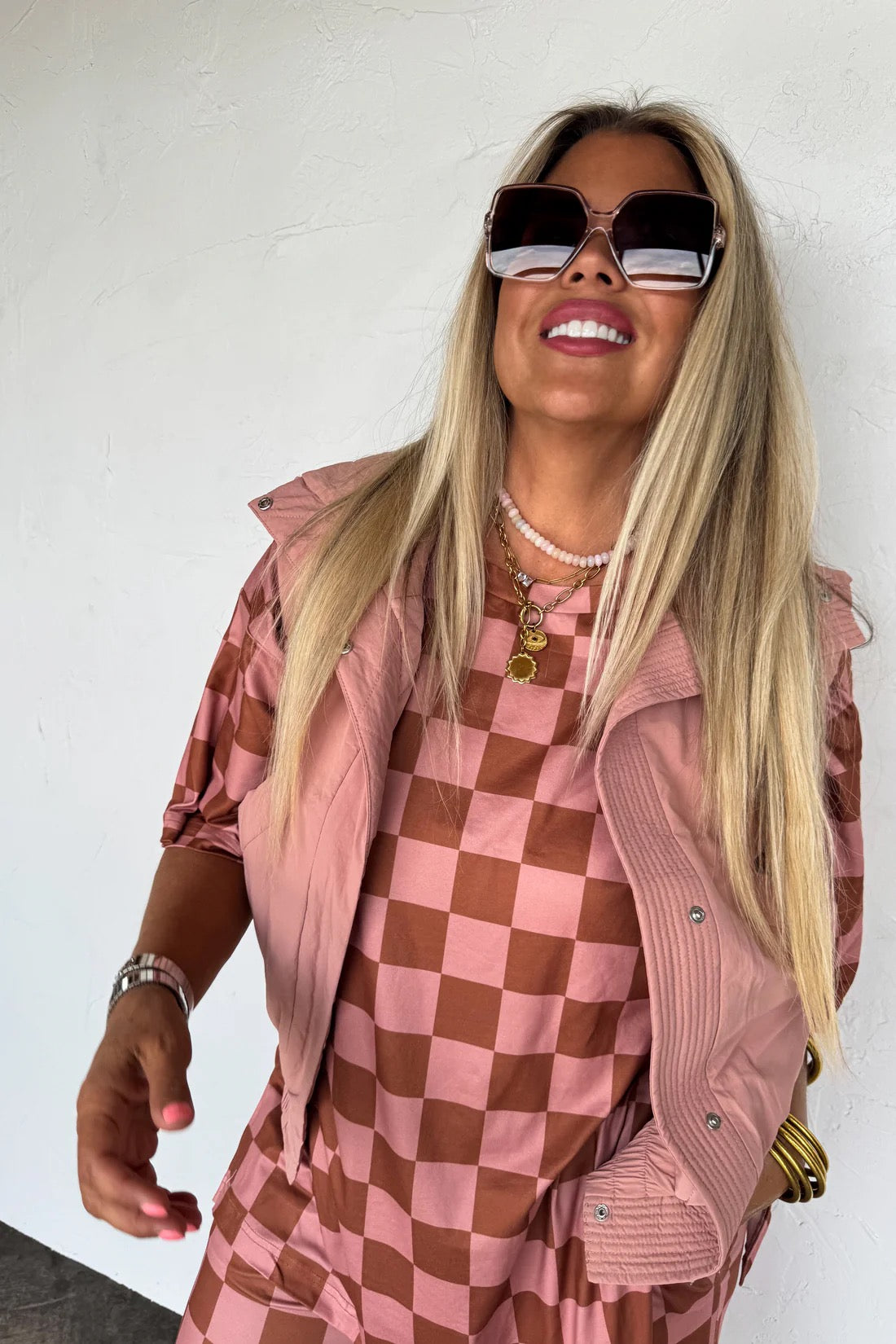 This lightweight vest features a structured silhouette with subtle quilting and a mock neckline for a modern edge. Designed with wide armholes, it layers effortlessly over any outfit without adding bulk. Includes a zipper closure and snap buttons for added functionality while maintaining its clean, minimal look. A closet staple for transitional weather and easy layering.
