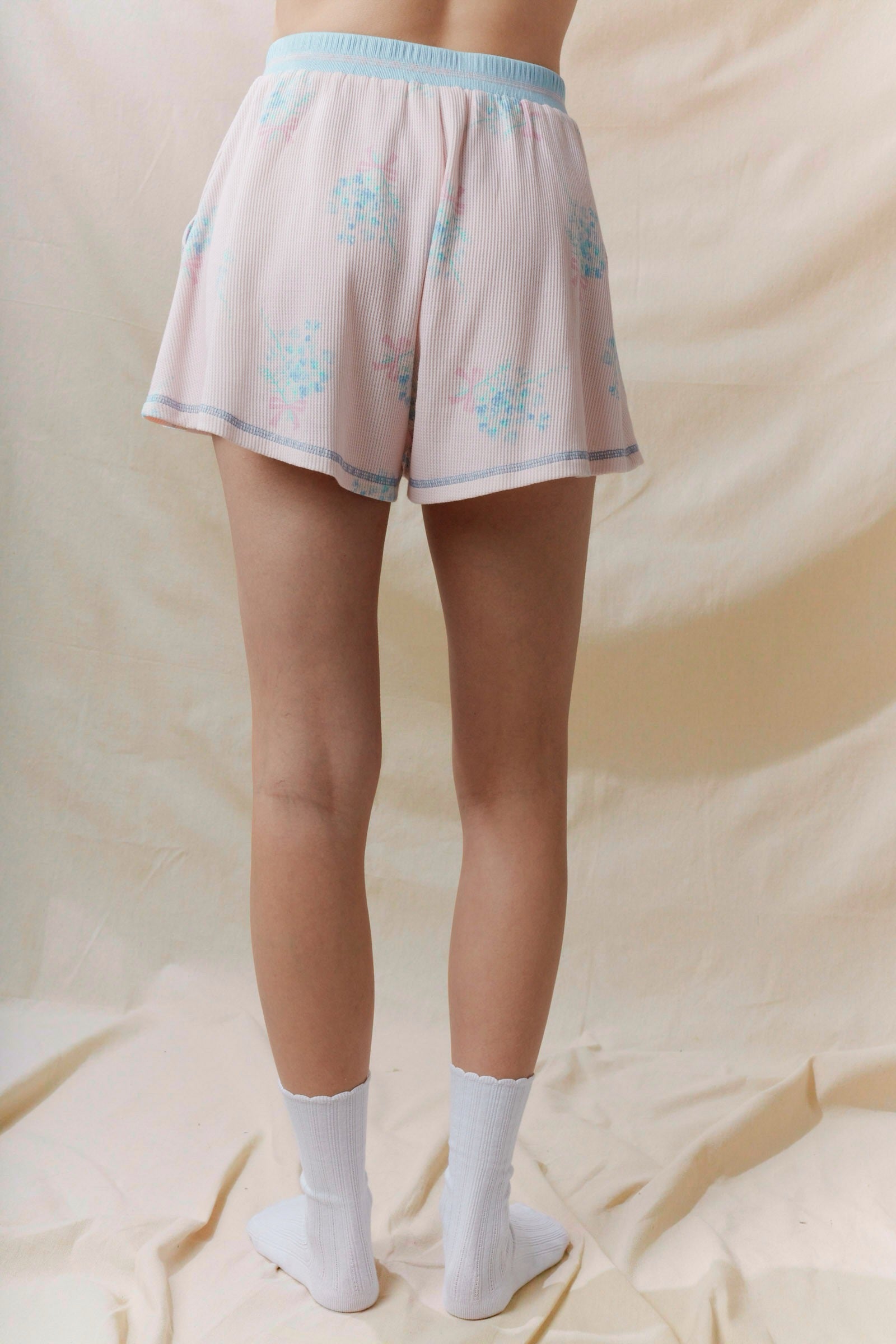 Sweet dreams start here with this pastel floral ribbed pajama set, a perfect blend of cozy comfort and vintage-inspired charm. Featuring a soft ribbed knit tank with delicate blue trim and a dainty pink bow, this set channels all the nostalgic bedtime vibes — with a modern, comfy twist. The matching high-waisted shorts include a button-front detail and gentle elastic waistband for a flattering yet relaxed fit.