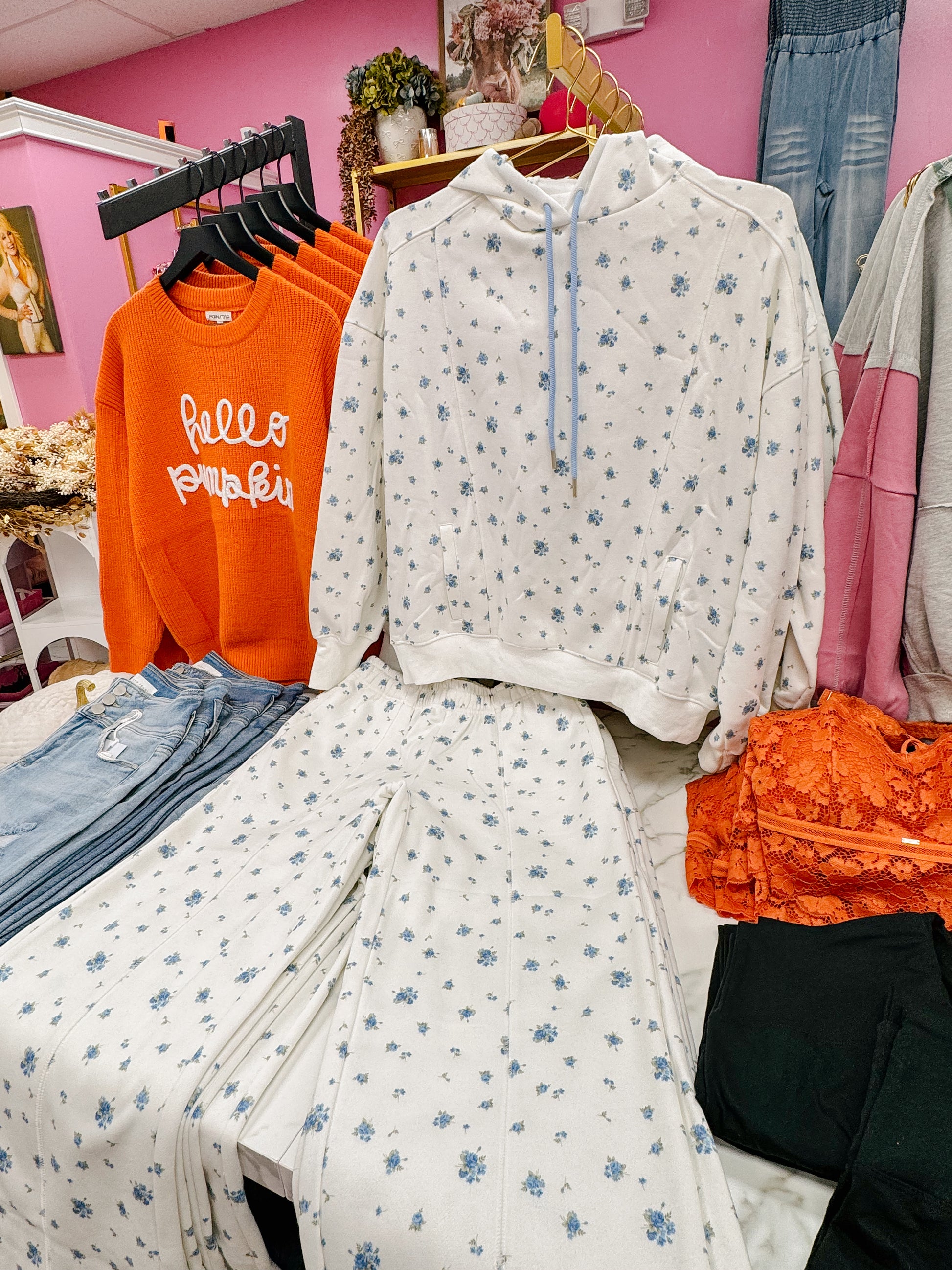 Pair them with the matching Blue Blossom Hoodie for the complete set, or style them with a fitted tank or knit top for laid-back days with a touch of charm.